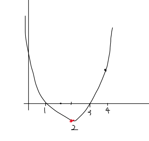위 그래프와 같은 경우에는 직관적으로 해를 찾는 것이 가능하지만 함수가 복잡해질 경우 해를 찾기 매우 어려운데