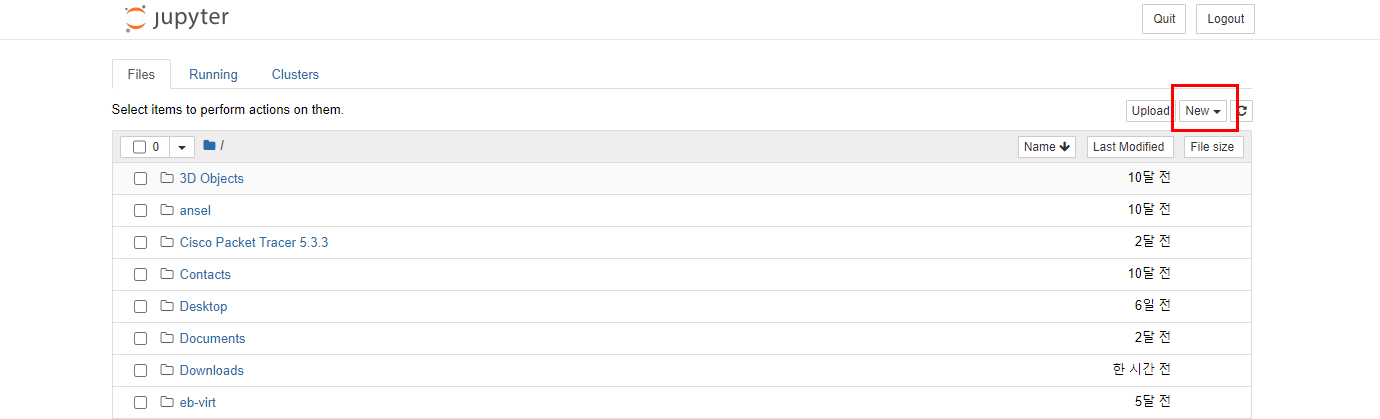 그러면 이렇게 주피터 창이 뜹니다.