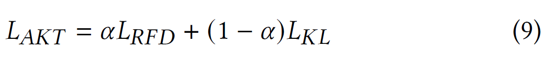 $L_AKT$ 수식에서 $\alpha$는 feature distillation과 logit distillation을 어느 정도 비율로 반영할지 결정하는 hyper-parameter이며, 실험에서는 default로 0.5로 지정하였음.$L_RFD$는 step 2에서 언급한 새로운 feature distillation loss를 활용하였으며, $L_KL$은 기존의 일반적인 logit distillation에 해당함.