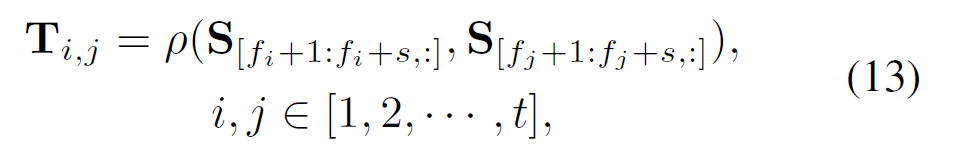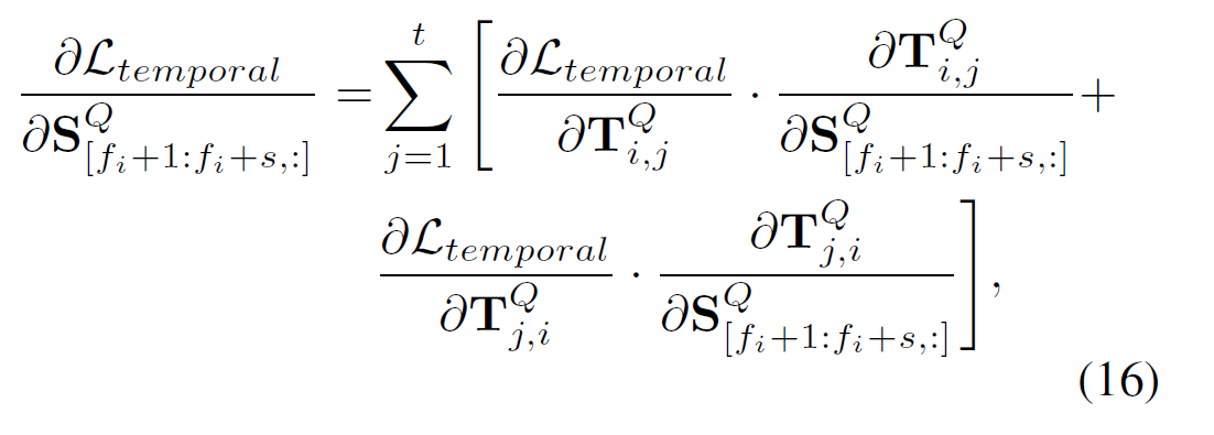 수식 13과 14에서는 frame $i$와 $j$의 유사도를 frame $i$의 입장에서 softmax로 취함.