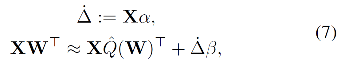 이어서 $XW^T$는 full-precision에 대한 출력인데, quantization을 진행하는 경우 이는 $X \hat{Q} (W)^T$로 근사됨.