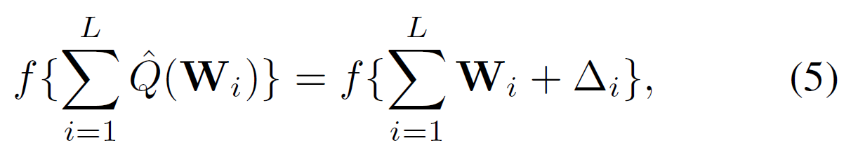 $L$ layer에 대한 weight quantization은 weight $W$에 perturbation(섭동) $\triangle$을 추가하는 것으로 볼 수 있음.