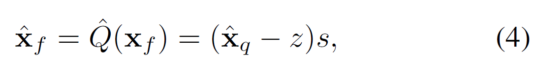 Quantized value들을 다시 복원하기 위해서는 Dequantize과정을 거쳐야하는데 아래 수식과 같이 진행함.