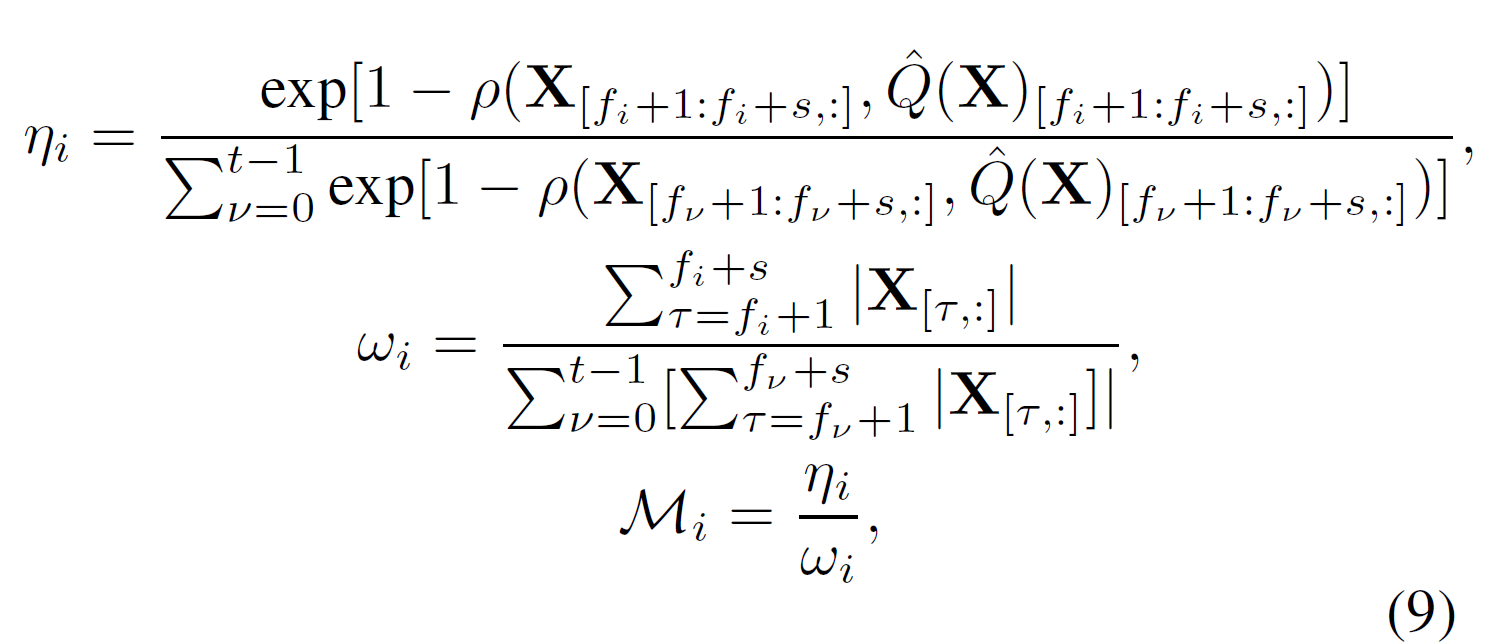 수식 9의 핵심은 오차가 큰 frame은 키우고, 원래 값이 큰 frame은 뭉개지도록 하여 frame별 게이트 $\mathcal{M}_i$를 만드는 것임.